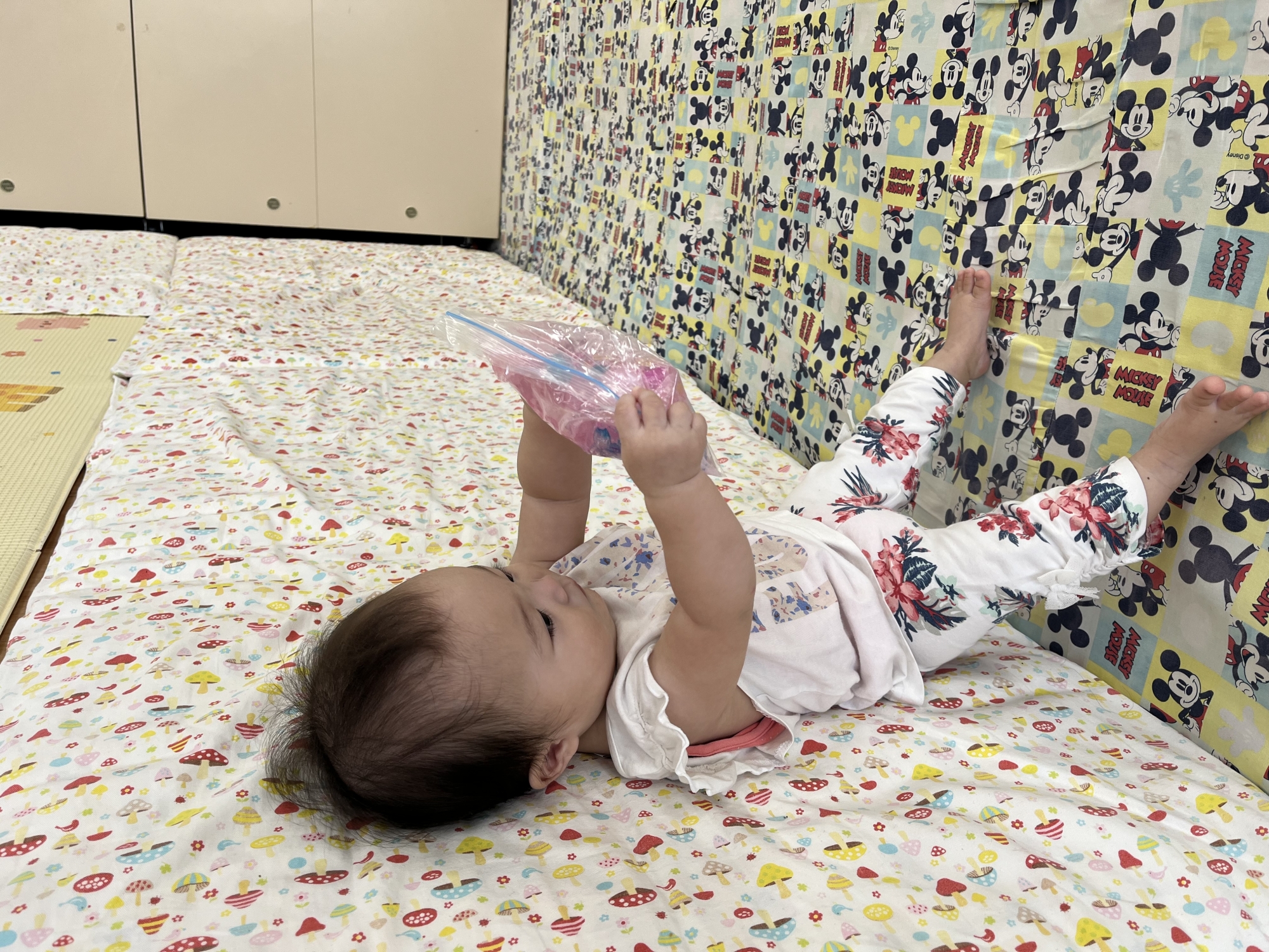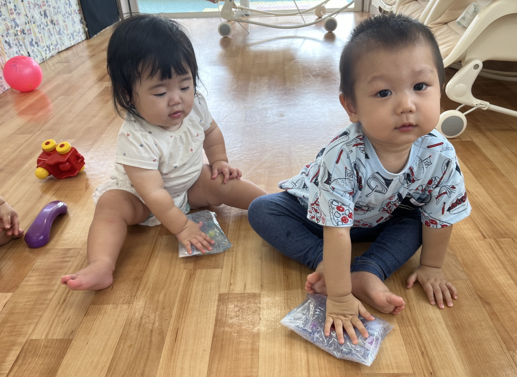 センサリーバッグを渡すと興味津々な子どもたちです。